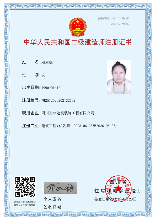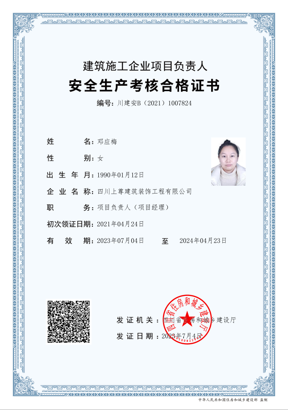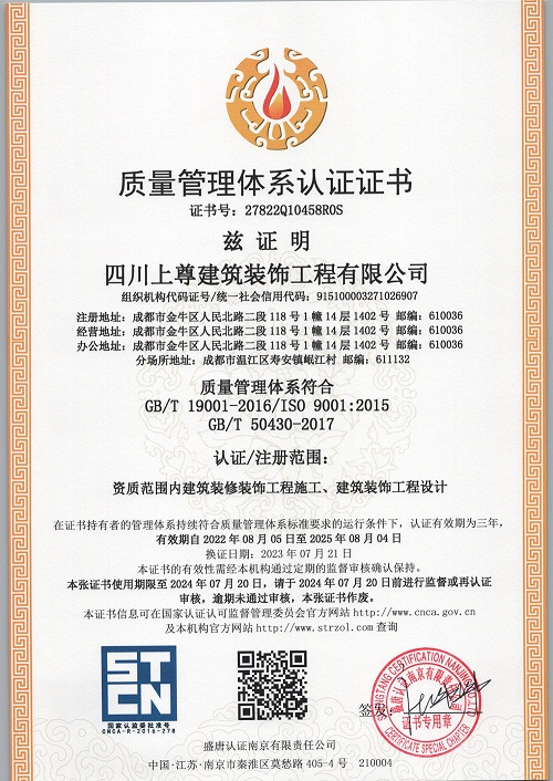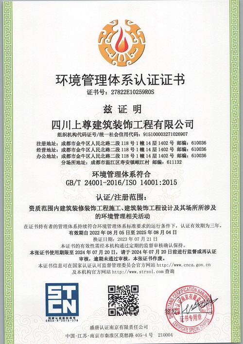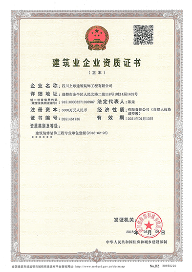 四川上尊建筑裝飾工程有限公司(原呈上設計事務所),成立于2015年,現員工200余人(中高級職稱30人),主營市政建筑工程、路橋工程、建筑裝飾裝修工程、裝飾設計、機電安裝工程和園林綠化工程;公司于2014年投入2000萬購買金牛萬達廣場甲級寫字樓C座1500平米用于辦公場所,注冊資金5000萬,公司是成都市建筑裝飾協會常務理事單位,并獲得四川省住建廳頒發的建筑裝修裝飾工程專業承包壹級資質和建筑裝飾工程設計專項乙級資質;2015年榮獲四川省“消費者口碑點贊企業”稱號,2016年加入四川省川聯企業商務促進會理事單位,2017年榮獲“四川省愛心企業”稱號,2018年榮獲“四川匠心成就企業”稱號,2019年榮獲“最具影響力企業”稱號,2021年榮獲“公益愛心企業”,2023年獲得“時代影響力企業”稱號。